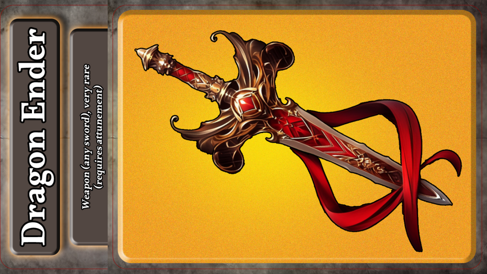 This is a more engaging version of the Dragon Slayer Longsword. This sword has a damaging ability and a utility ability when fighting dragons. This gives the player wielding this sword more choice and strategy when attempting to slay these classic monsters. Enjoy!